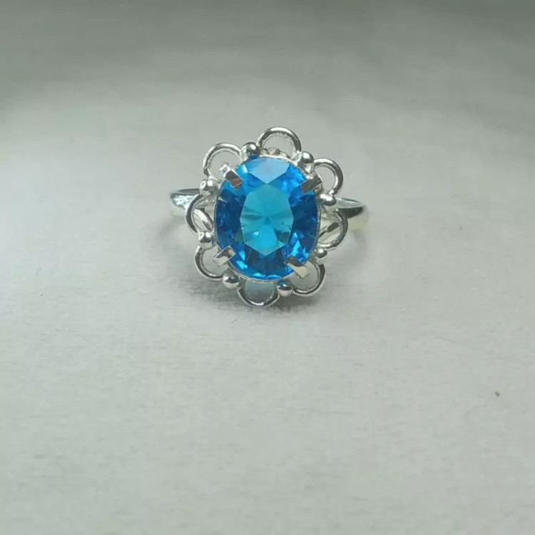 انگشتر نقره زنانه نگین توپاز ازمایشگاهی تراش جواهری