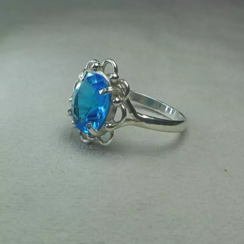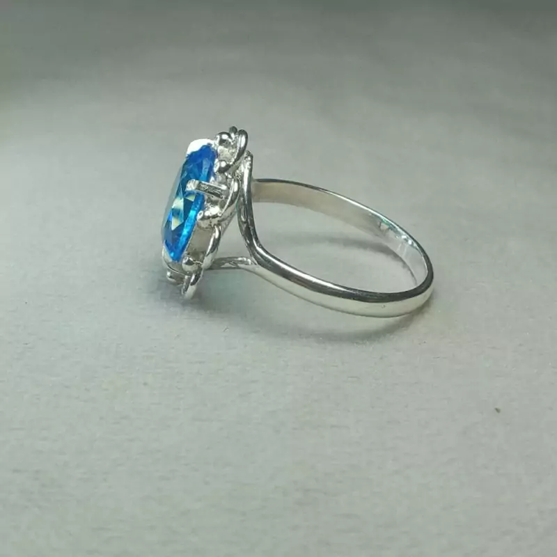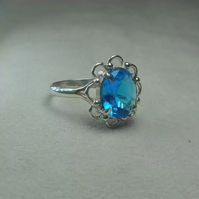 انگشتر نقره زنانه نگین توپاز ازمایشگاهی تراش جواهری
