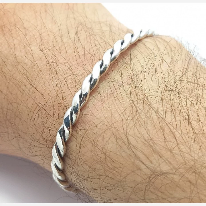 دستبند نقره مردانه مدل پیچ کاملا دست ساز