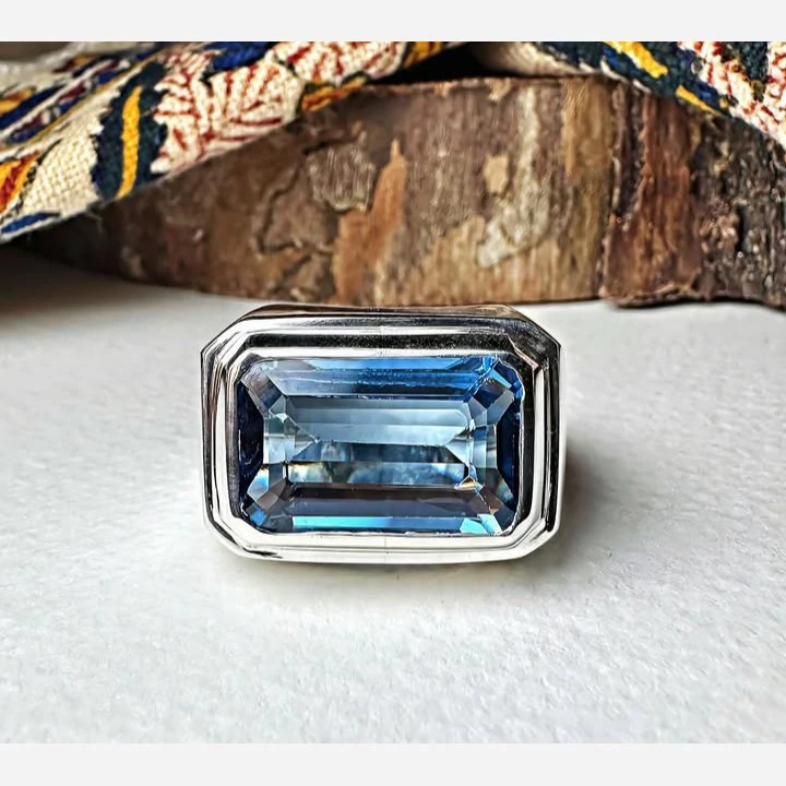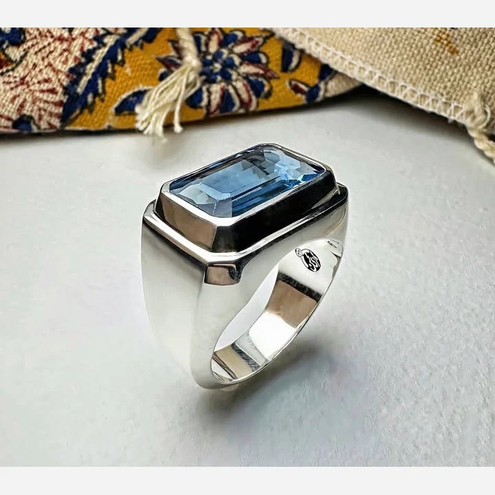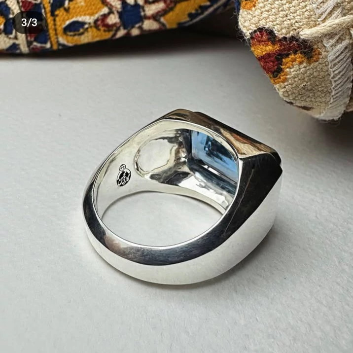 انگشتر توپاز طبیعی مردانه رکاب نقره بسیار زیبا و چشمگیر کارشده با نقره عیار 925 و نگین توپاز کاملا طبیعی و معدنی تراش نگین به شکل مستطیلی و جواهری میباشد طرح نگین خانه ساده و بسیار زیبا کاملا دست ساز مناسب اقایان شیک پسند ساخته شده توسط استاد ماهر در زمینه نقره سازی وزن انگشتر 22 گرم میباشد