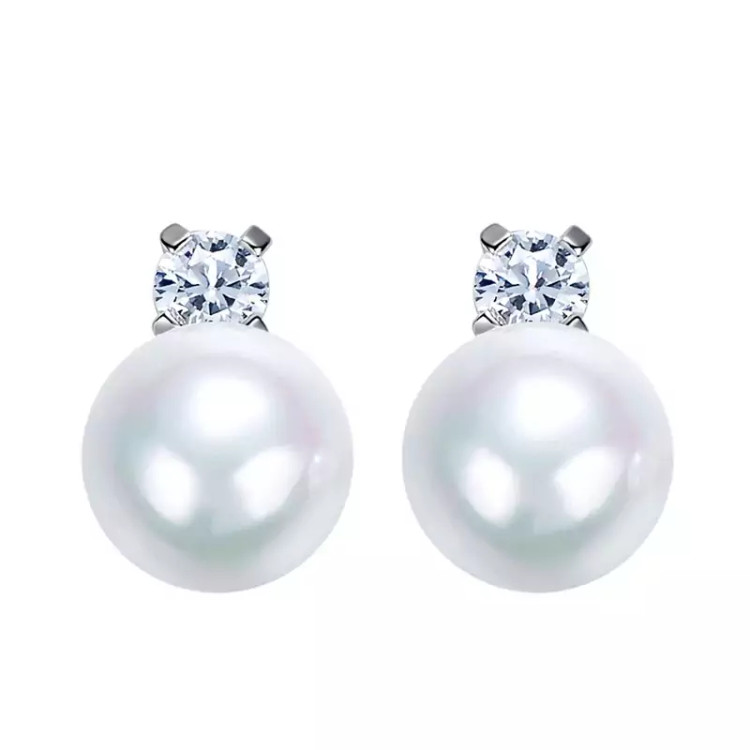 گوشواره نقره ابکاری رودیوم کارشده با مروارید و موزانایت