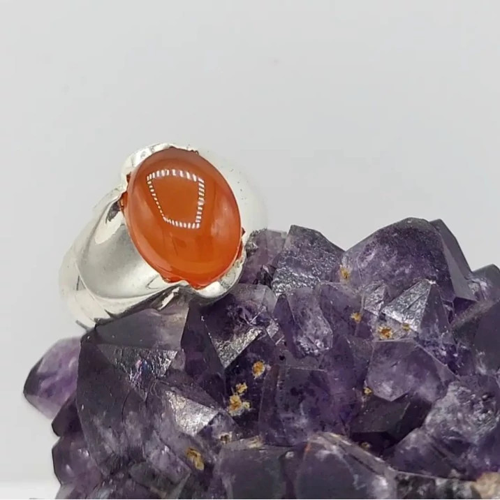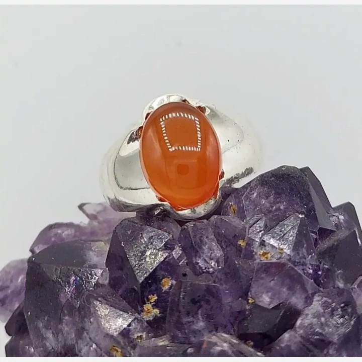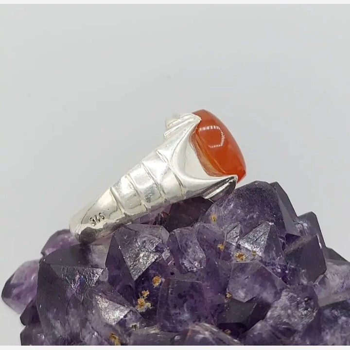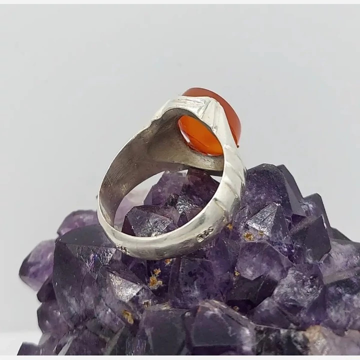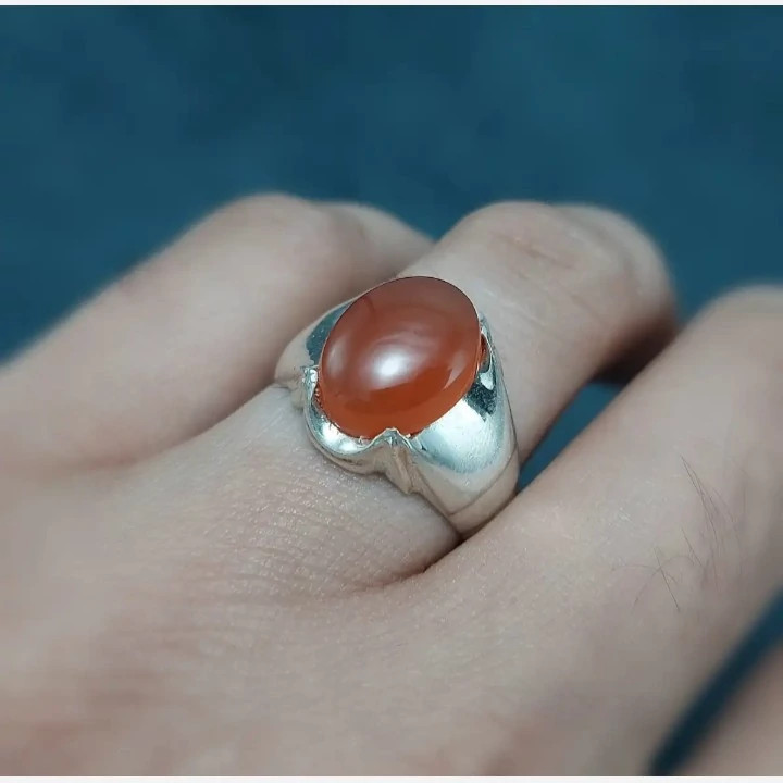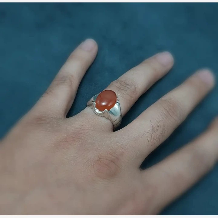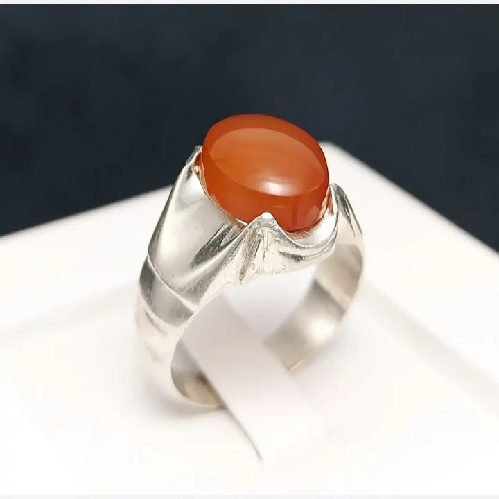 انگشتر عقیق یمن پرتقالی مردانه رکاب دست ساز کارشده با نقره عیار 925 و نگین عقیق یمن پرتقالی تراش تخت تراش نگین به شکل بیضی و تخت میباشد طرح رکاب بسیار ساده و شکیل میباشد مناسب اقایان شیک پسند ساخته شده توسط استاد ماهر در زمینه نقره سازی وزن انگشتر 16 گرم میباشد