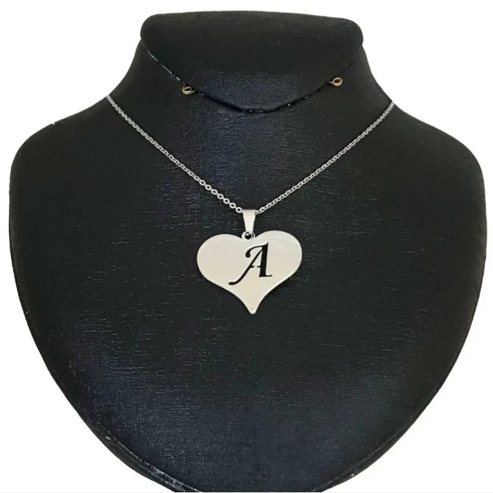 پلاک شکل قلب حرف A توخالی به همراه با زنجیر نقره عیار 925