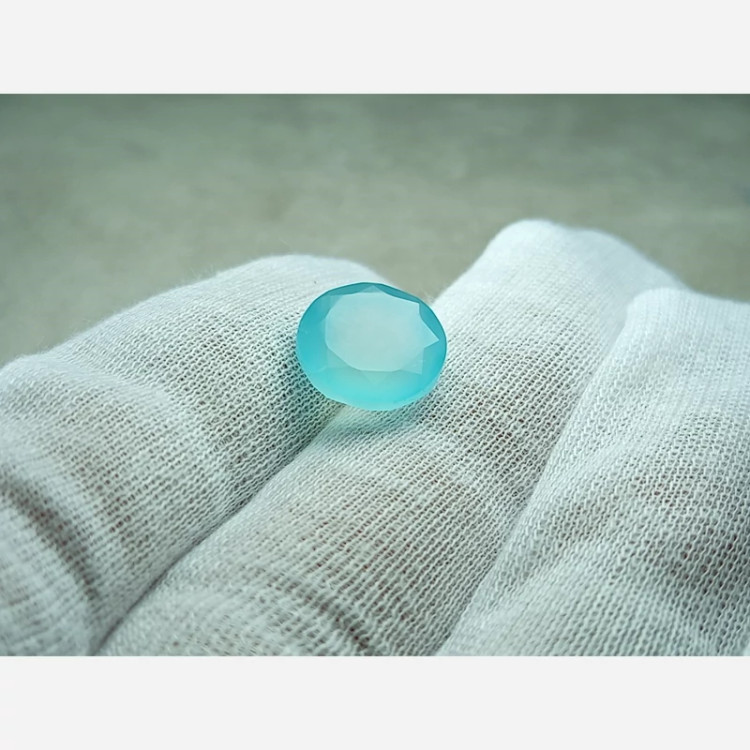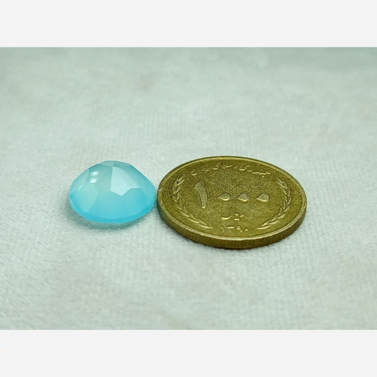 نگین عقیق ابی گرد تراش جواهری زیبا و چشمگیر بسیار خوشرنگ و زیبا رنگ هیت شده کد 1524 وزن 1.44 گرم ابعاد 14*14 میلی متر ارسال فوری به کل کشور