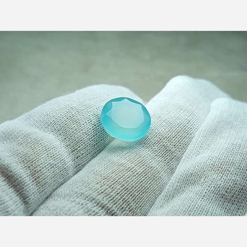 نگین عقیق ابی گرد تراش جواهری زیبا و چشمگیر بسیار خوشرنگ و زیبا رنگ هیت شده کد 1524 وزن 1.44 گرم ابعاد 14*14 میلی متر ارسال فوری به کل کشور
