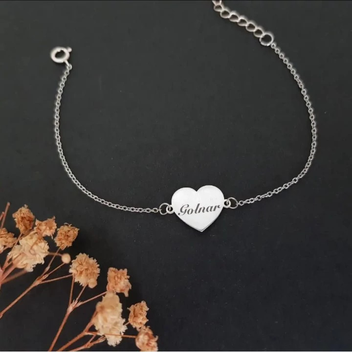 طرح لیزری حکاکی شده اسم گلنار برروی قلب و زنجیر نقره