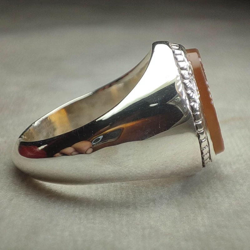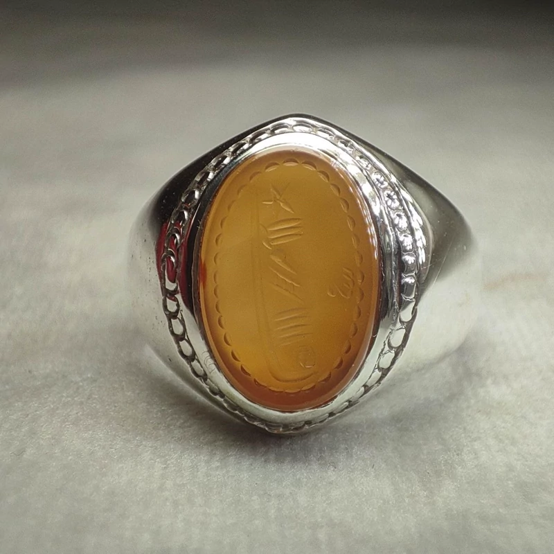 انگشتر عقیق یمنی عسلی با حکاکی حرز شرف شمس