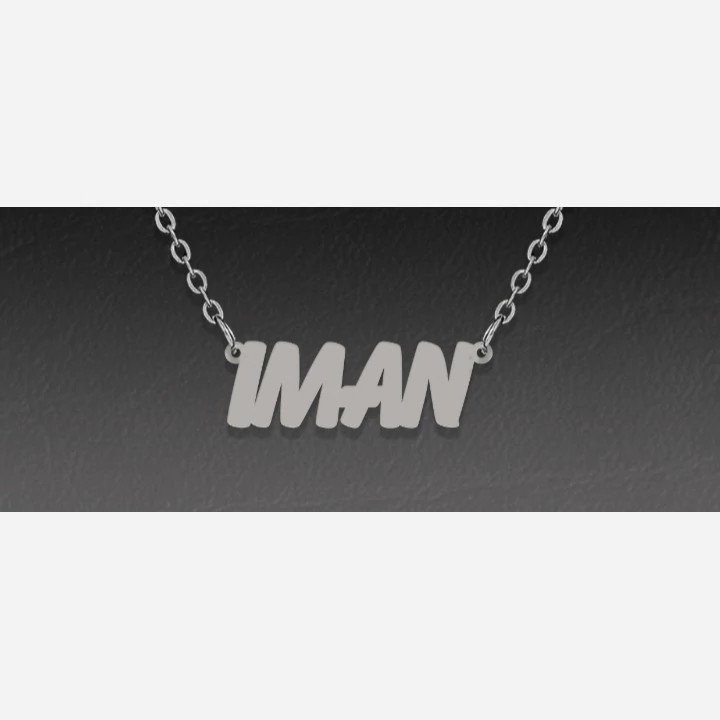 پلاک گردنبند اسم ایمان به لاتین IMAN متصل به زنجیر نقره عیار 925 کارشده با نقره عیار 925 کار اسپرت و کاملا به روز قابل استفاده برای خانم ها و اقایان مناسب هدیه به عزیزانتان وزن کلی کار یعنی پلاک و زنجیر باهم 3 گرم