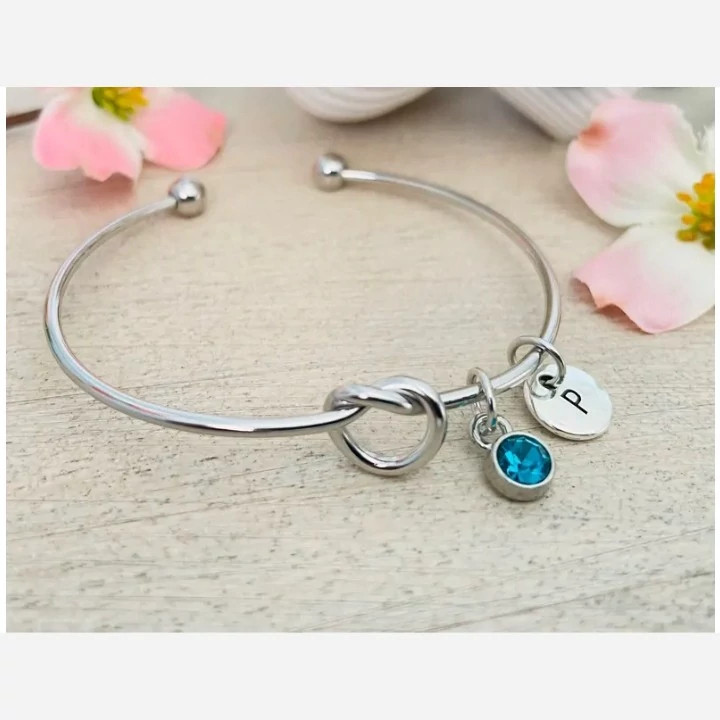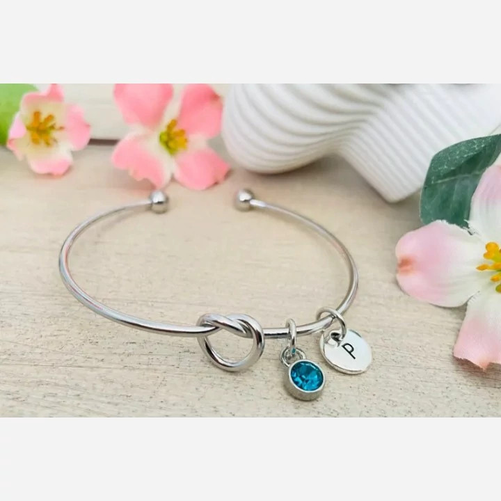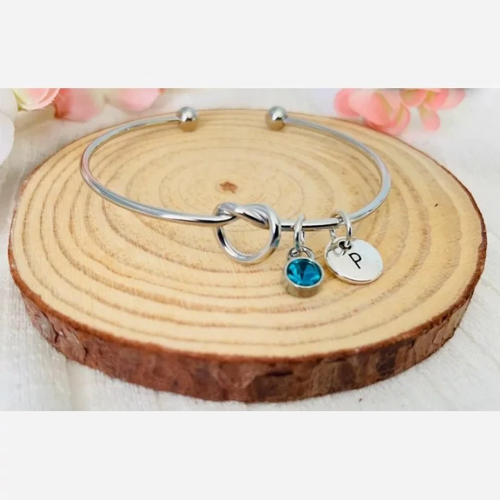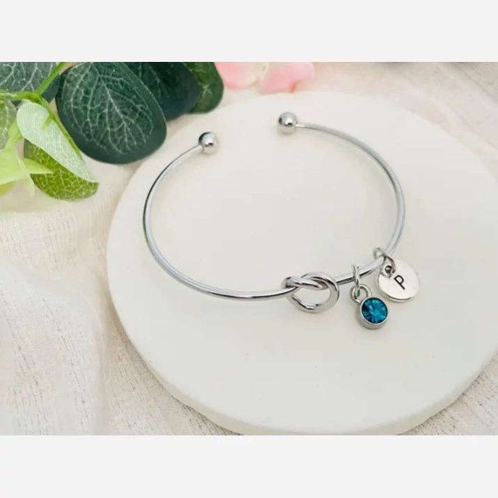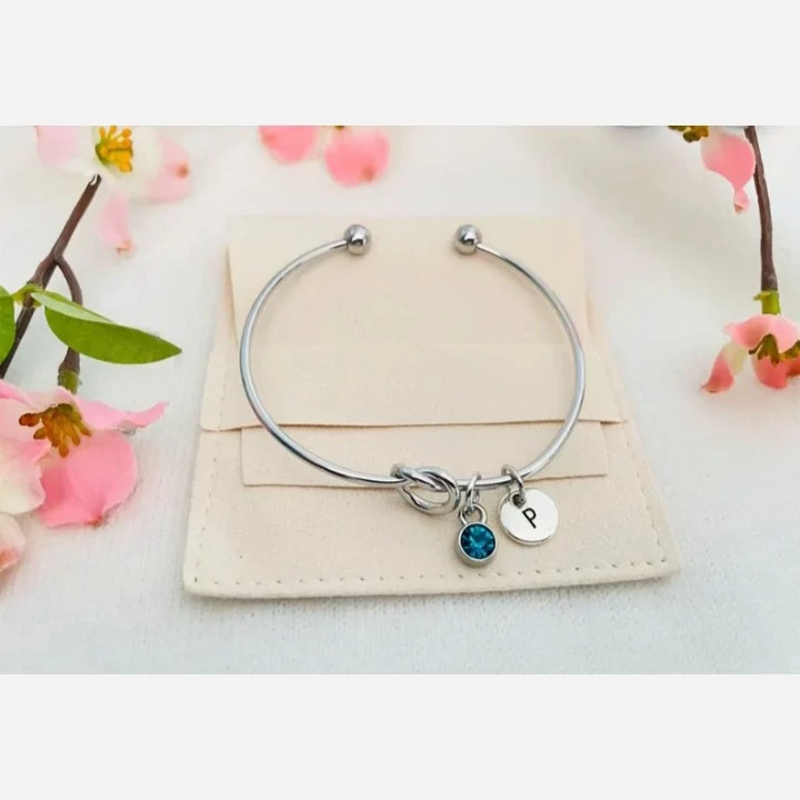 بنگل نقره زنانه و دخترانه دارای آویز حرف به دلخواه شما و آویز توپاز سنتاتیک حرف لاتین حکاکی شده در این دستبند بنا یه درخواست شما کار میشود کار شده با نقره عیار 925 نگین توپاز کار شده در این دستبند سنتاتیک صنعتی میباشد و بنگل نقره و دور قاب دایره ای شکل کارشده با نقره کاملا دست ساز میباشد کار بسیار ترند و کاملا به روز مناسب استفاده برای خانم ها و دخترخانم ها وزن کار 10 گرم