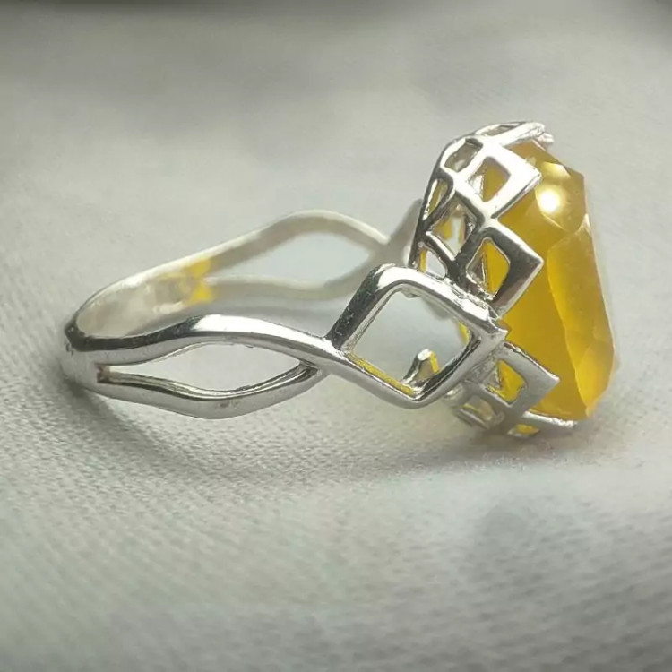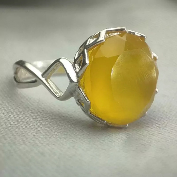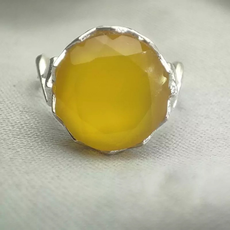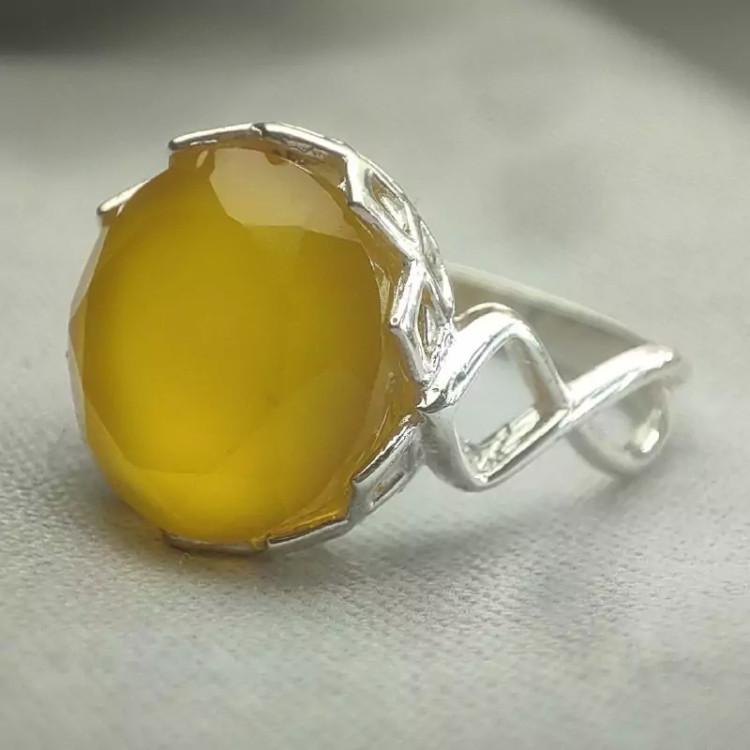 انگشتر نقره زنانه نگین عقیق زرد تراش جواهری