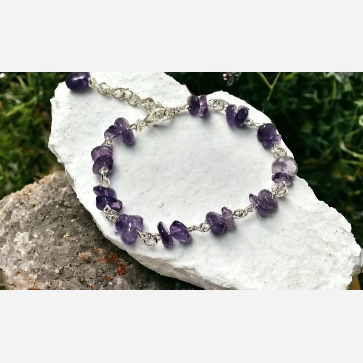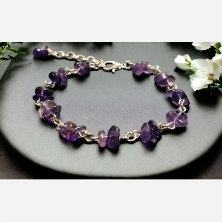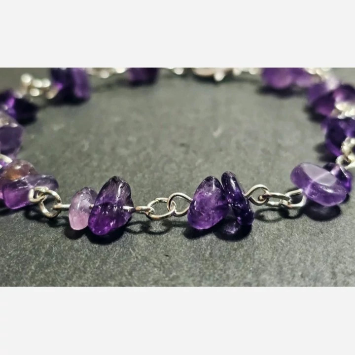 دستبند نقره زنانه کارشده با امیتیست طبیعی و معدنی چیپسی کاملا دست ساز ساخته شده توسط استاد ماهر در زمینه نقره سازی کار بسیار جدید ترند و سفارشی ساز طرح بسیار جذاب مناسب خانم های زیباپسند گزینه ای بسیار عالی جهت هدیه به خانم ها وزن کلی دستبند 13 گرم