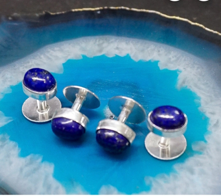 یک عدد سردکمه ای نقره کارشده با لاجورد طبیعی