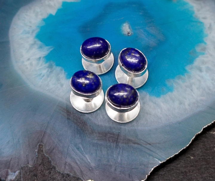 یک عدد سردکمه ای نقره کارشده با لاجورد طبیعی