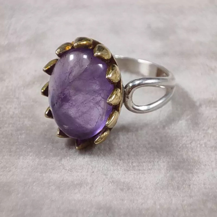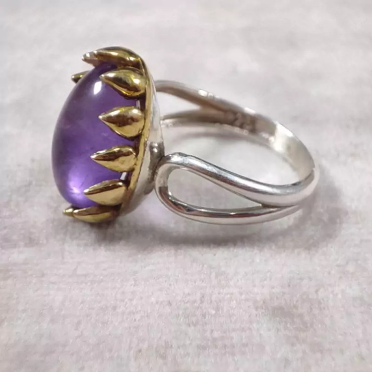 انگشتر امیتیست یخی نقره زنانه تاج برنجی زیبا