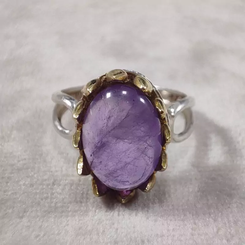 انگشتر امیتیست یخی نقره زنانه تاج برنجی زیبا