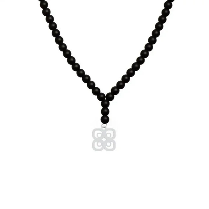 گردن بند نقره مدل طرح دار 15 همراه با بند اونیکس