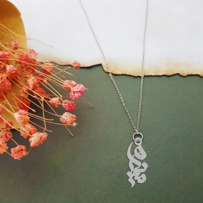 گردنبند نقره طرح اسم منیره همراه با زنجیر نقره عیار 925