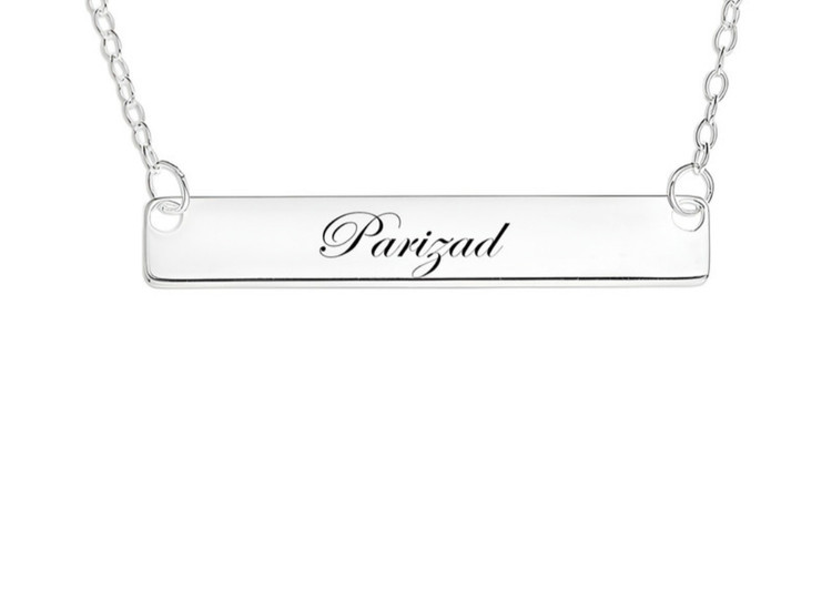 پلاک نقره حکاکی اسم پریزاد داخل قاب مستطیل از جنس نقره همراه با زنجیر نقره عیار ۹۲۵