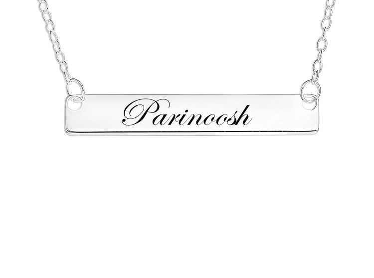 پلاک نقره حکاکی اسم پرینوش داخل قاب مستطیل از جنس نقره همراه با زنجیر نقره عیار ۹۲۵