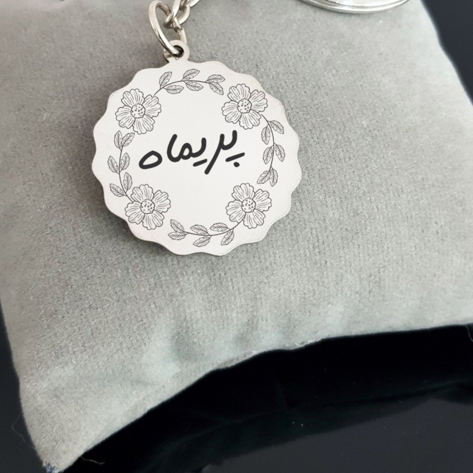 جاسوئیچی نقره دست ساز حکاکی شده اسم پریماه