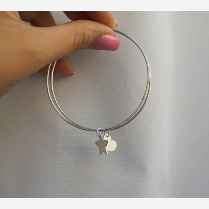 یک جفت دستبند نقره ساده زنانه و دخترانه دارای اویز ماه و ستاره