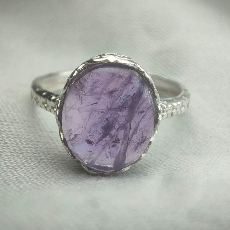 انگشتر امیتیست زنانه معدنی یخ دار ، جنس رکاب نقره