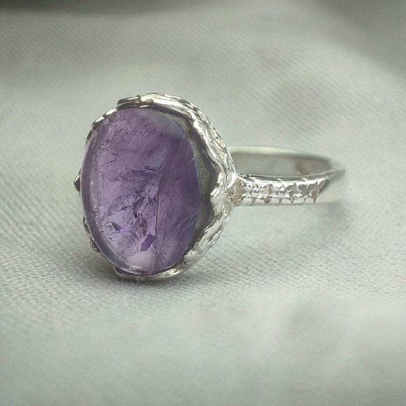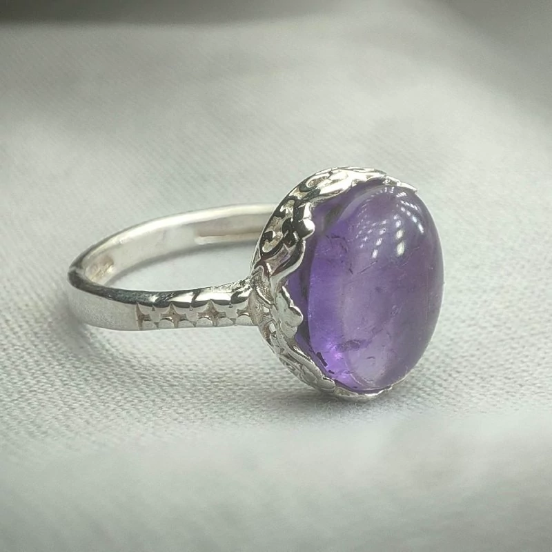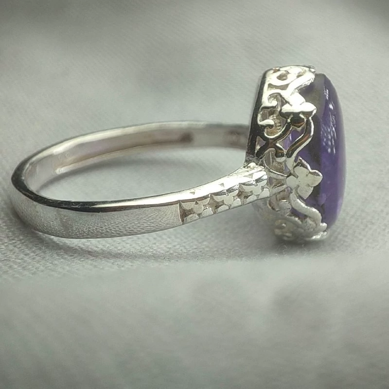 انگشتر امیتیست زنانه معدنی یخ دار ، جنس رکاب نقره