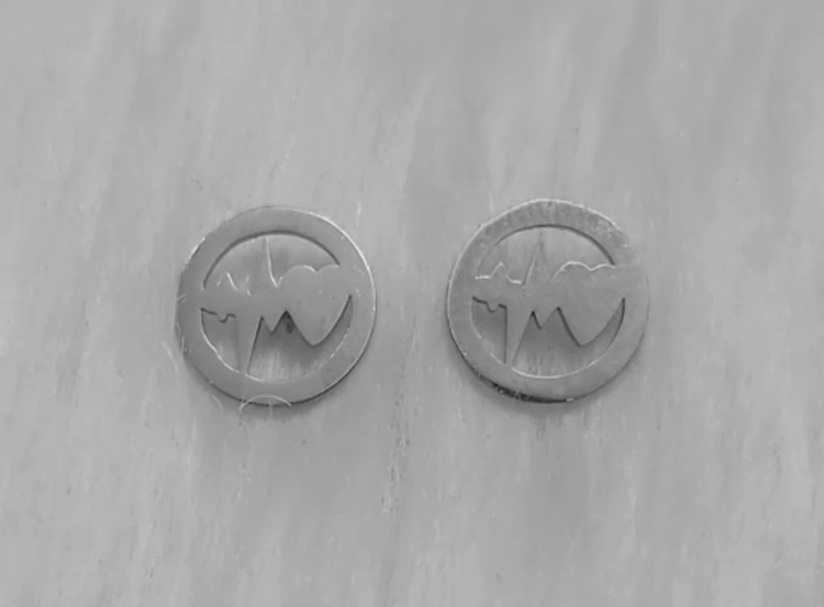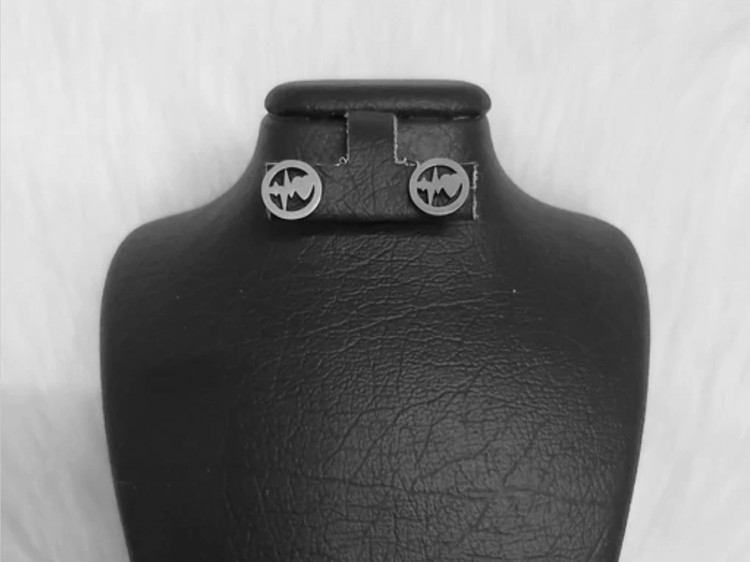 گوشواره نقره میخی مدل ضربان قلب داخل قاب دایره ای