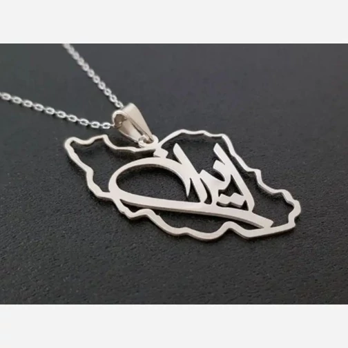 گردنبند نقره مدل نقشه ایران و نام وطن همراه با نقره عیار 925