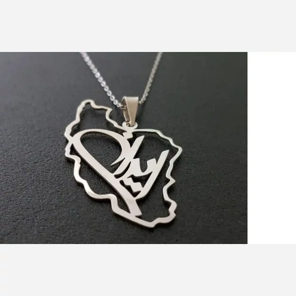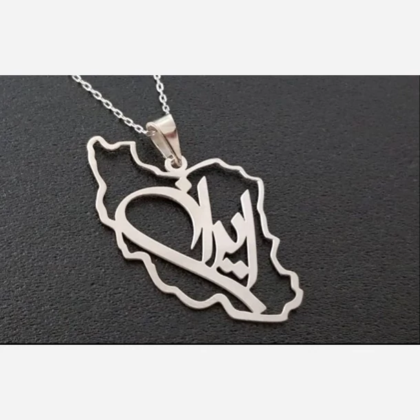 گردنبند نقره مدل نقشه ایران و نام وطن همراه با نقره عیار 925