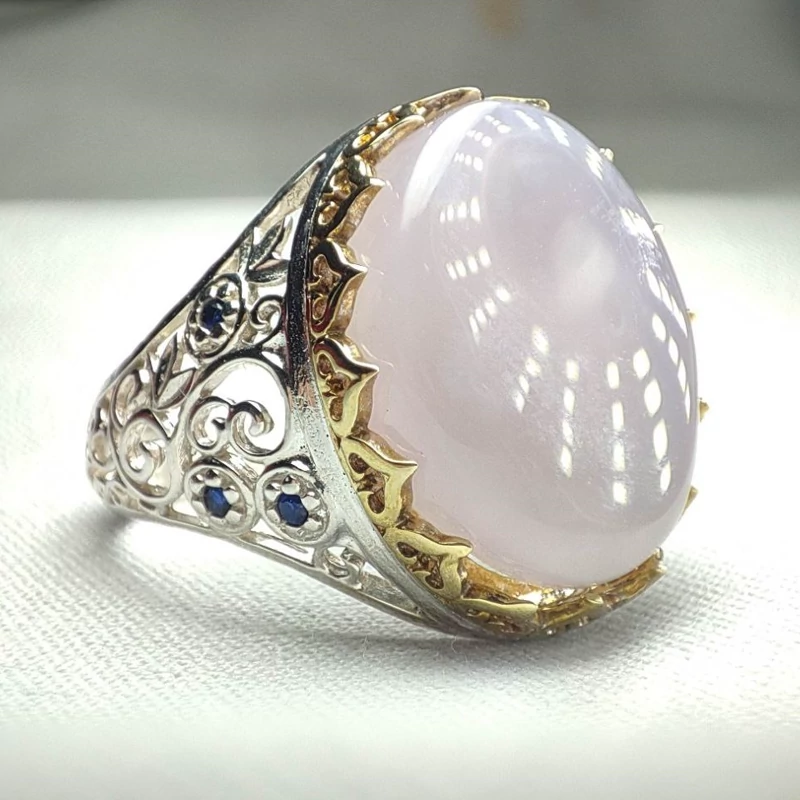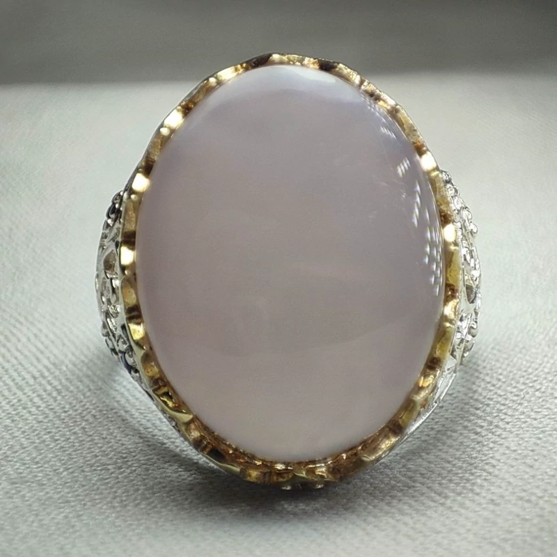 انگشتر عقیق یمنی سوسنی کبود رکاب نقره تاج برنجی بسیار زیبا و شکیل