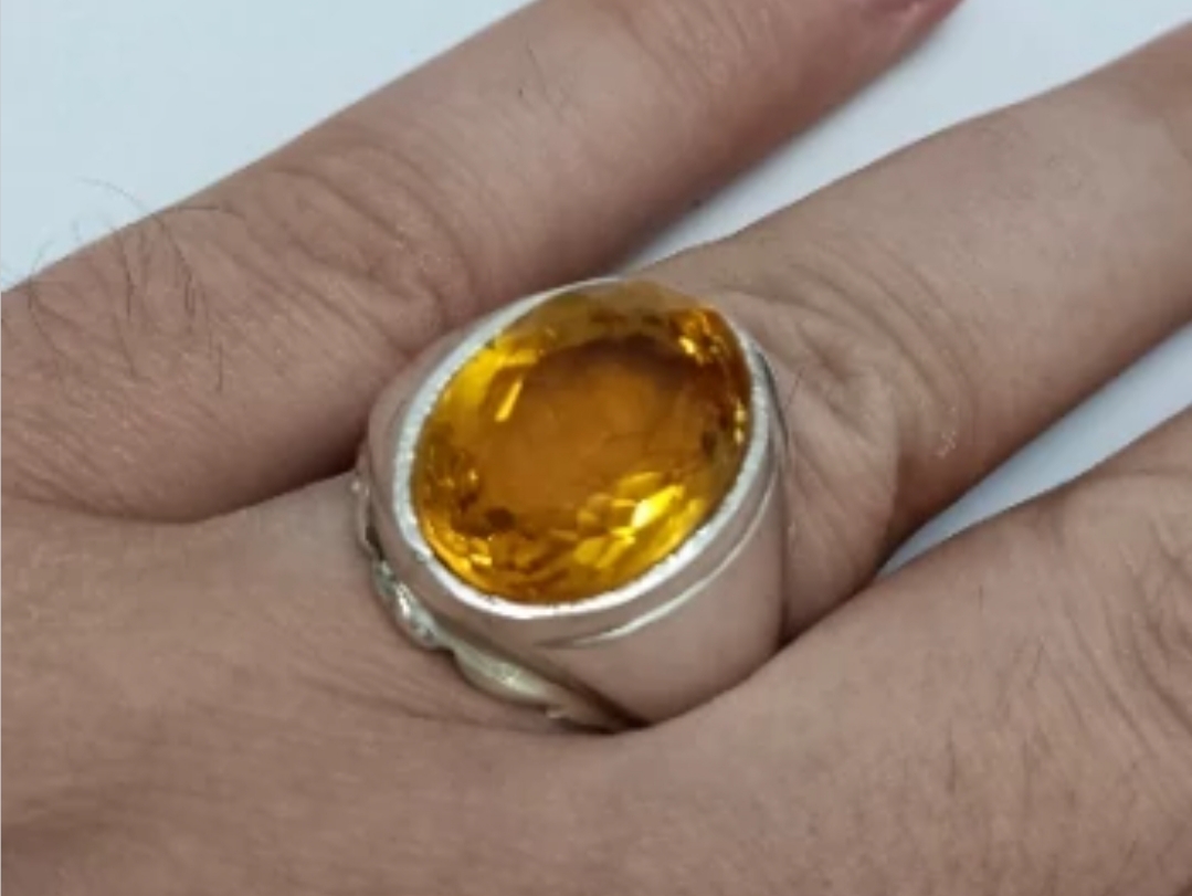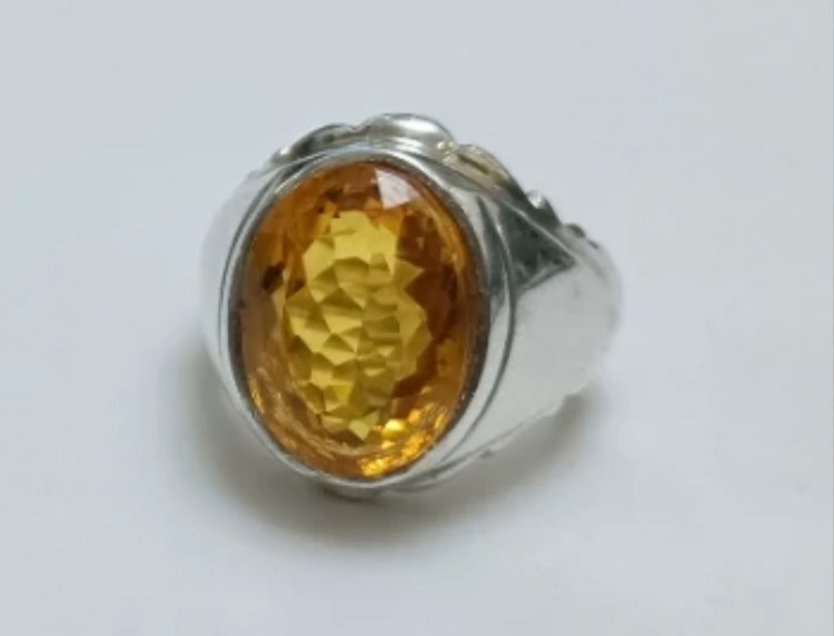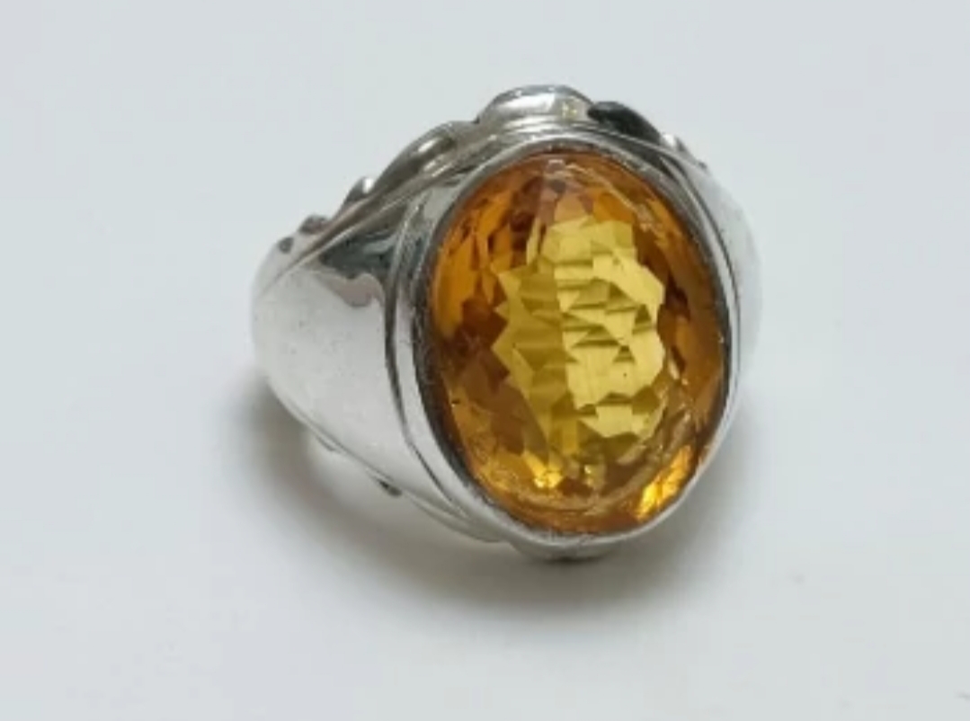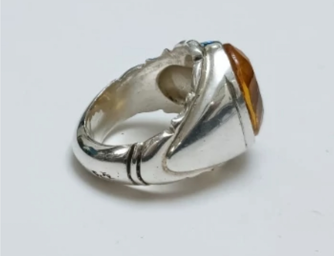 انگشتر نقره مردانه کارشده با سیترین طبیعی