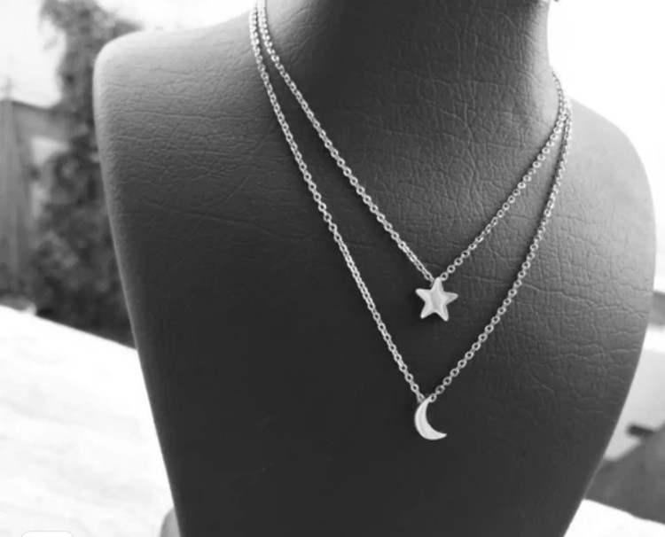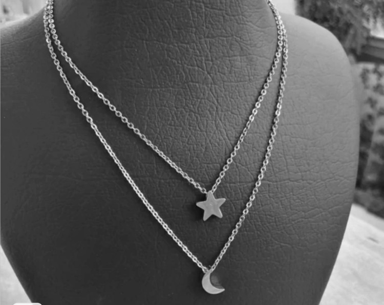 گردن بند دولاین نقره مدل ماه و ستاره ای