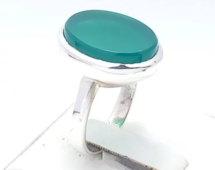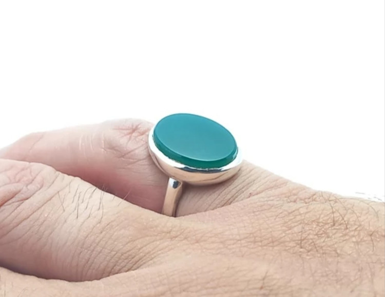 انگشتر نقره مردانه کارشده با عقیق سبز طبیعی رنگ شارژ