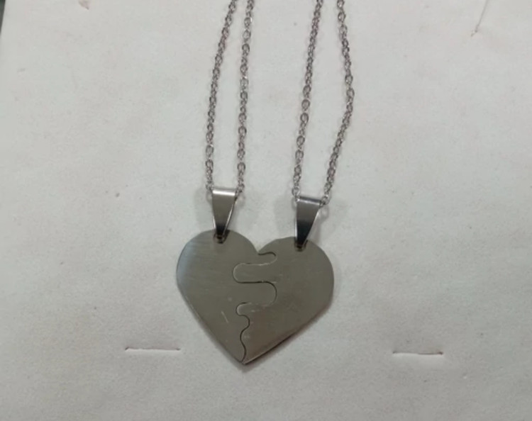 این گردنبند شامل دو عدد زنجیر نقره میباشد و دو تیکه قلب نصفه نقره