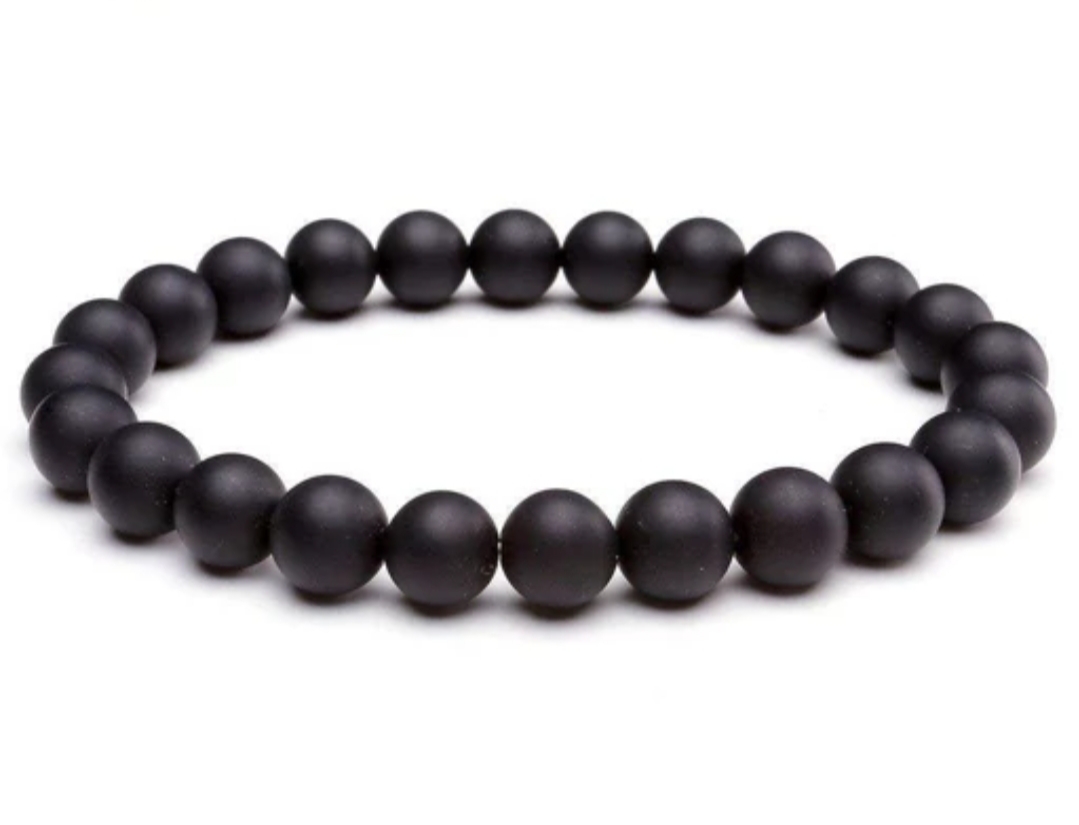 دستبند اونیکس سیاه ساده مردانه و زنانه کار اسپرت و ساده قابل استفاده برای خانم ها و اقایان دارای بند کشی کار اسپرت قابل استفاده برای خانم ها و اقایان