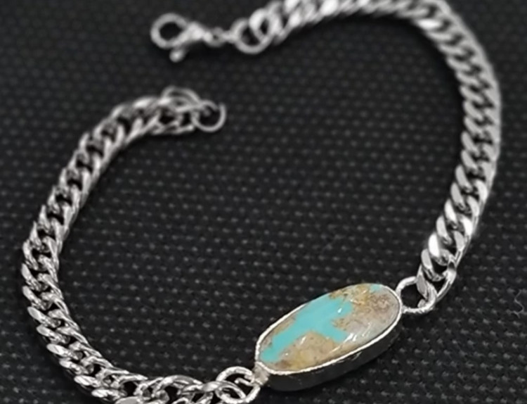 دستبند فیروزه نیشابور اسپرت کارشده با نقره عیار 925