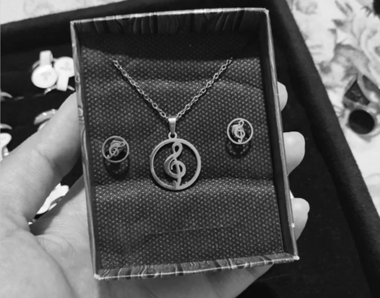 شامل یک جفت گوشواره میخی و یک زنجیر و پلاک