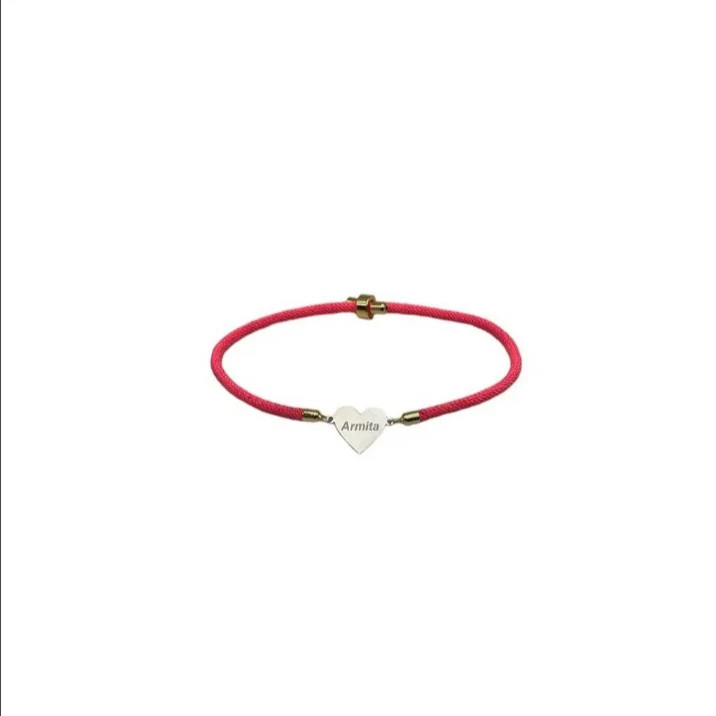 دستبند نقره عیار 925 پلاک حکاکی شده اسم ارمیتا در قاب شکل قلب