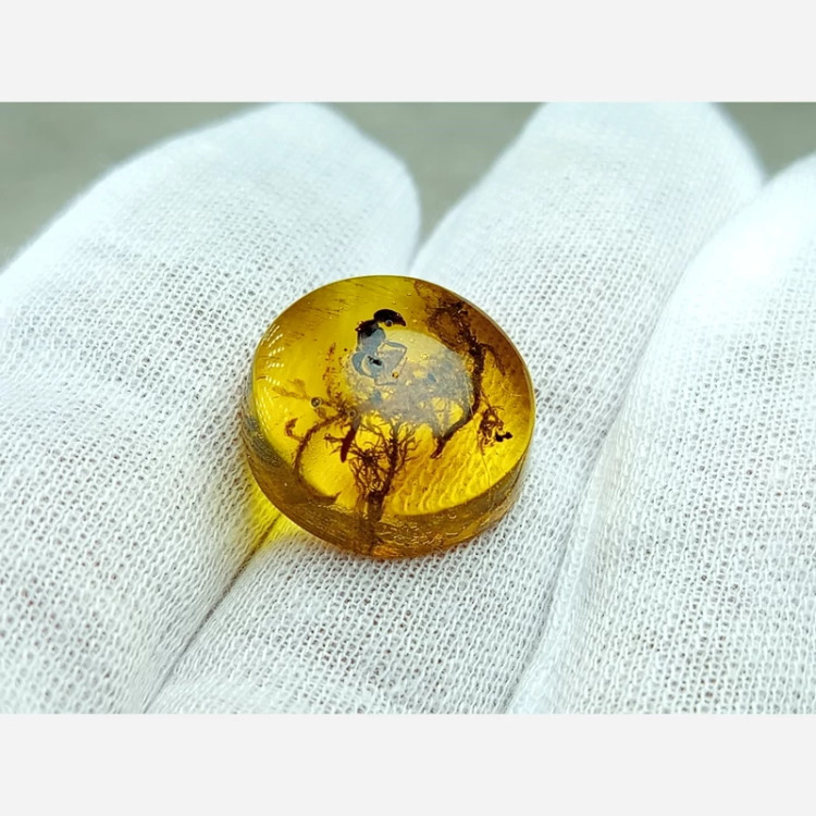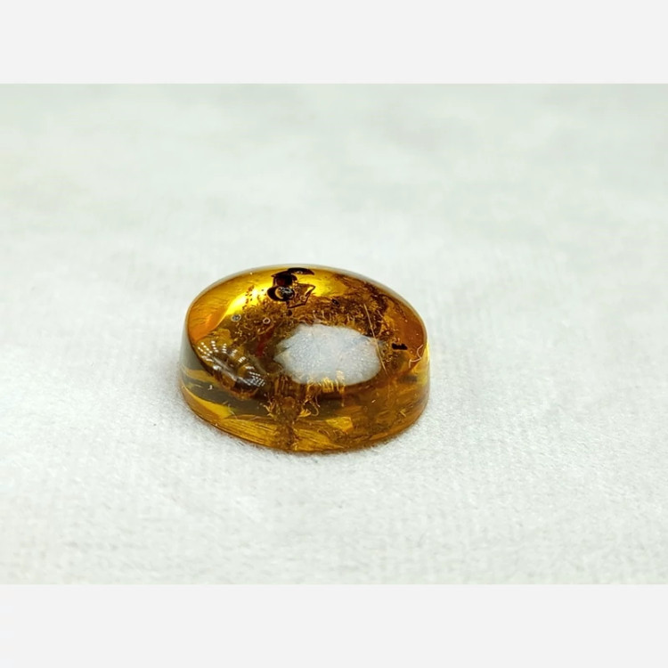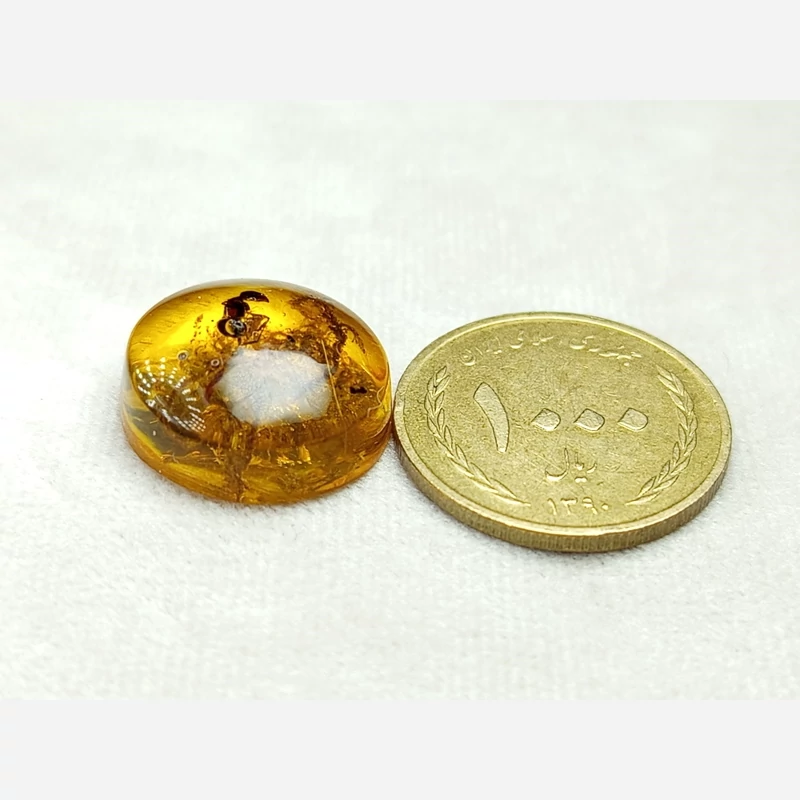 کهربا پودری سنتاتیک گرد و حشره دار شفاف و براق طلایی رنگ بسیار زیبا کد 1544 وزن 1.89 گرم ابعاد 19×19 میلی متر ارسال فوری به کل کشور