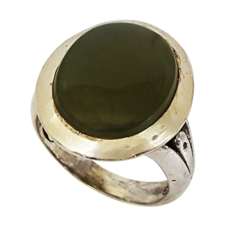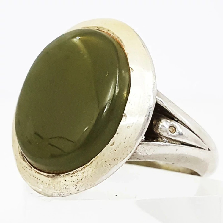 انگشتر مردانه رکاب دست ساز نقره 925 نگین یشم طبیعی و معدنی