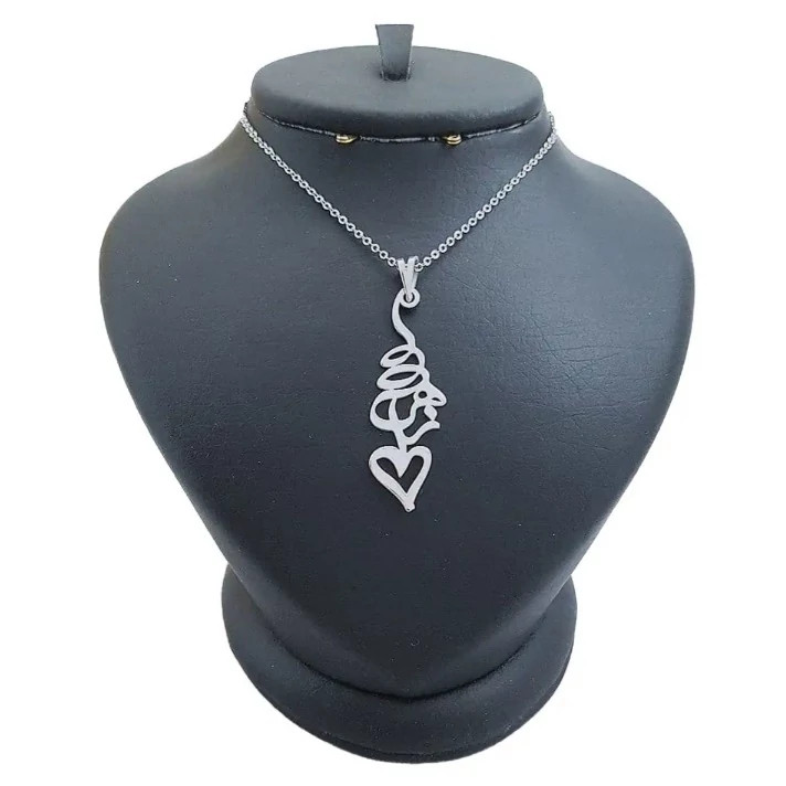 گردنبند نقره طرح نوشته اسم زهرا و قلب همراه با زنجیر نقره