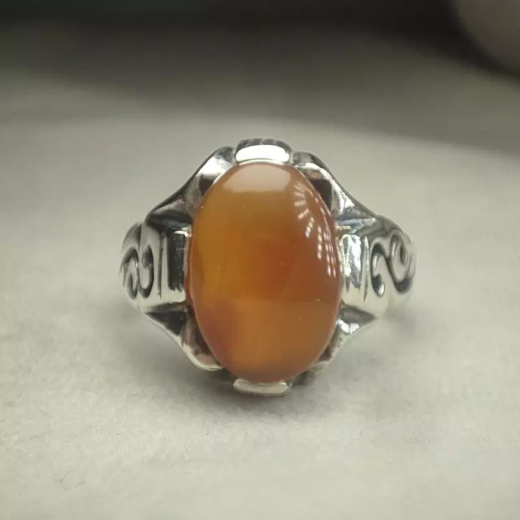انگشترمردانه نقره رکاب دستساز سنگ عقیق یمنی