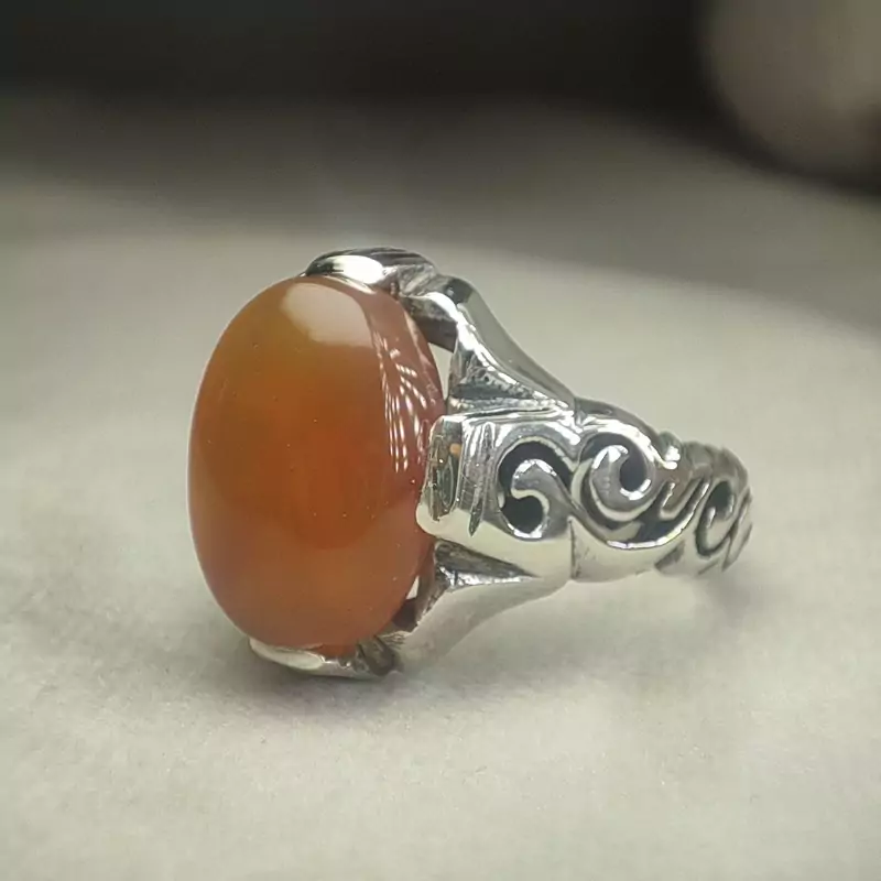 انگشترمردانه نقره رکاب دستساز سنگ عقیق یمنی