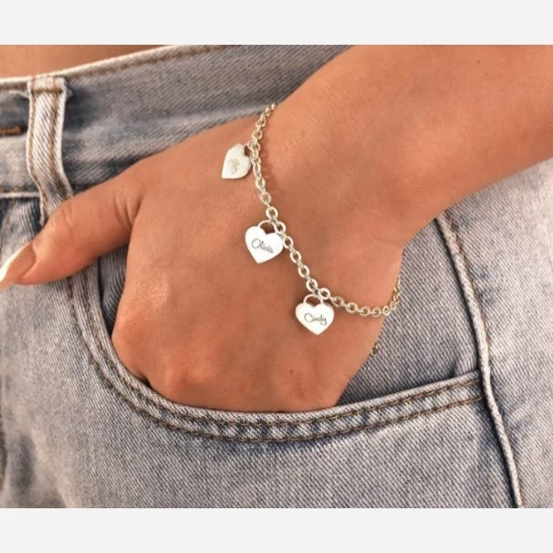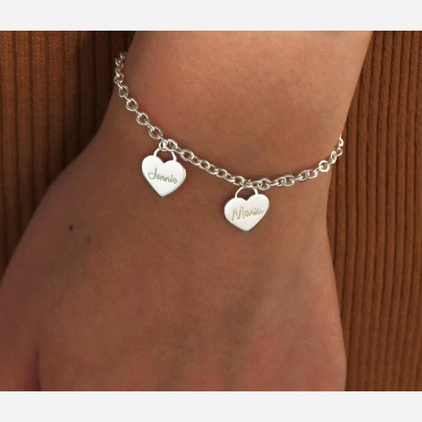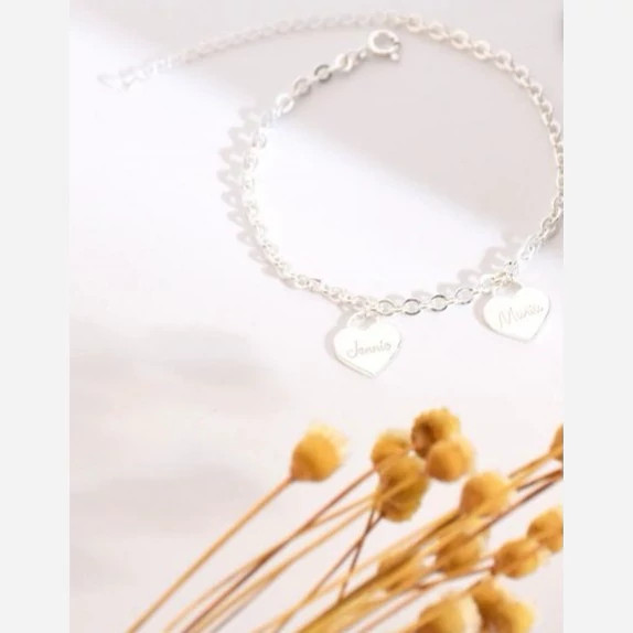 دستبند نقره زنانه دارای اویز قلبی کلمه حکاکی شده در اویز قلبی شکل دستبند بنا به درخواست شما مشتری عزیز انجام میشود کار شده با نقره عیار 925 ساخته شده توسط استاد ماهر در زمینه نقره سازی کار بسیار ترند و کاملا به روز مناسب استفاده برای خانم ها و دخترخانم ها وزن کار ۵ گرم