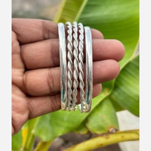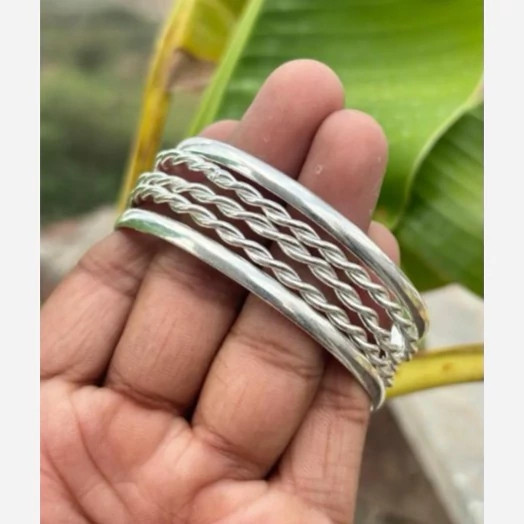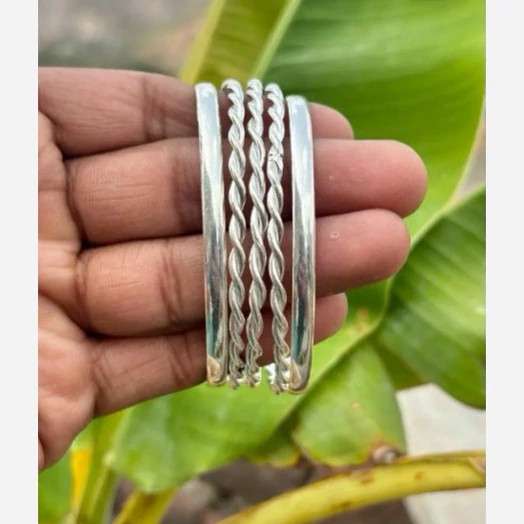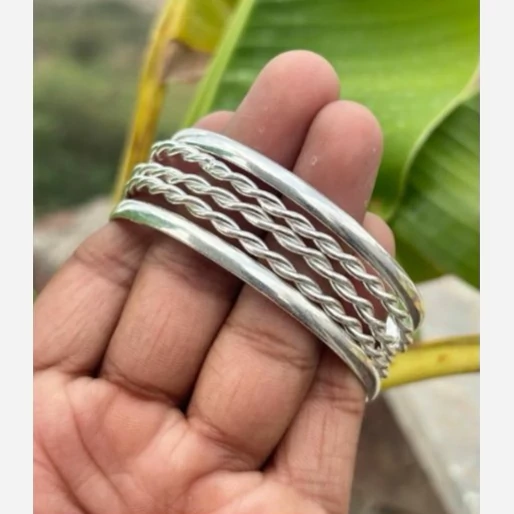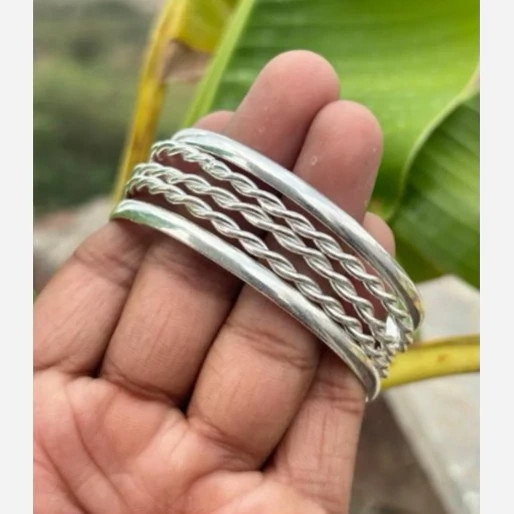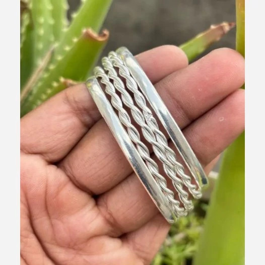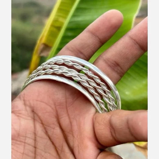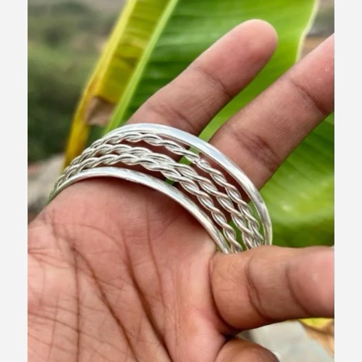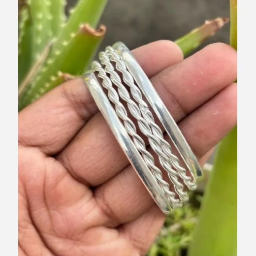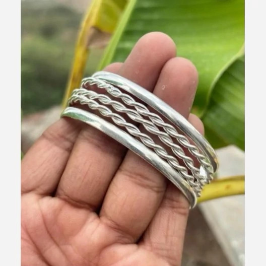 پنج عدد النگو نقره زنانه کاملا دست ساز ساخته شده با نقره عیار 925 توسط استاد ماهر در زمینه نقره سازی دو عدد از این النگو ها ساده و سه عدد دارای طرح پیچ دار میباشند کار بسیار خاص و زیبا و کاملا ترند و به روز مناسب خانم ها و دخترخانم های شیک پسند سایز این النگو بنا به خواست مشتری میباشد وزن کلی هر پنج عدد النگو باهم 30 گرم است