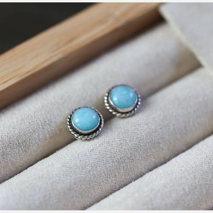 نگین های امازونیت طبیعی و معدنی کار شده در این گوشواره به شکل گرد بسیار زیبا و خوشرنگ میباشند