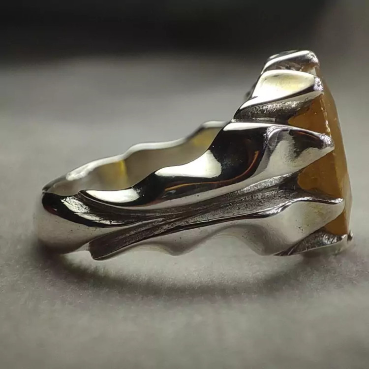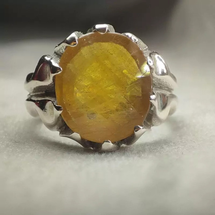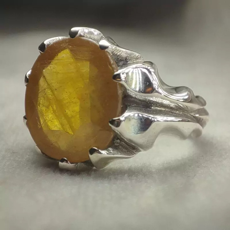 انگشتر نقره مردانه نگین یاقوت زرد معدنی