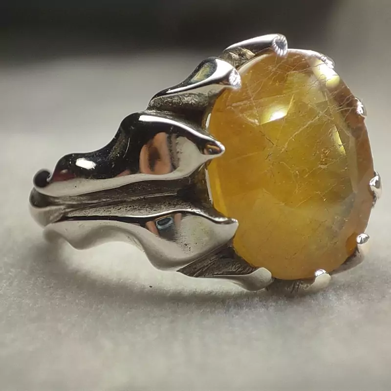 انگشتر نقره مردانه نگین یاقوت زرد معدنی