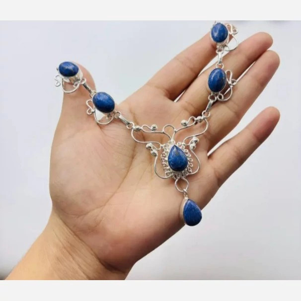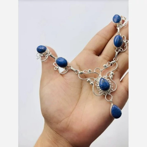 گردنبند نقره دست ساز کار شده با شش عدد لاجورد طبیعی و معدنی